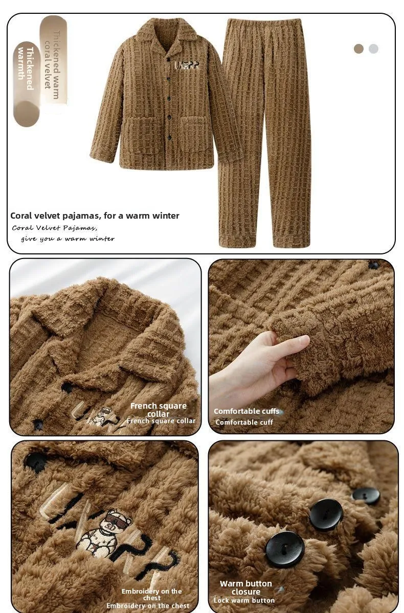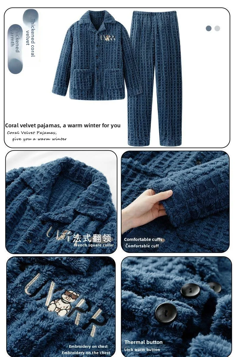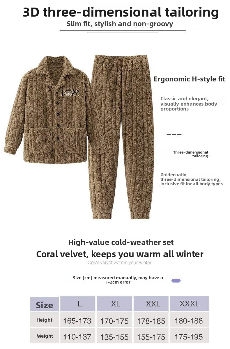 2025 Autumn Winter Coral Fleece Thickened Flannel Sleepwear Home Clothes Set for Men Breathable Long Sleeve Long Pants Pajamas