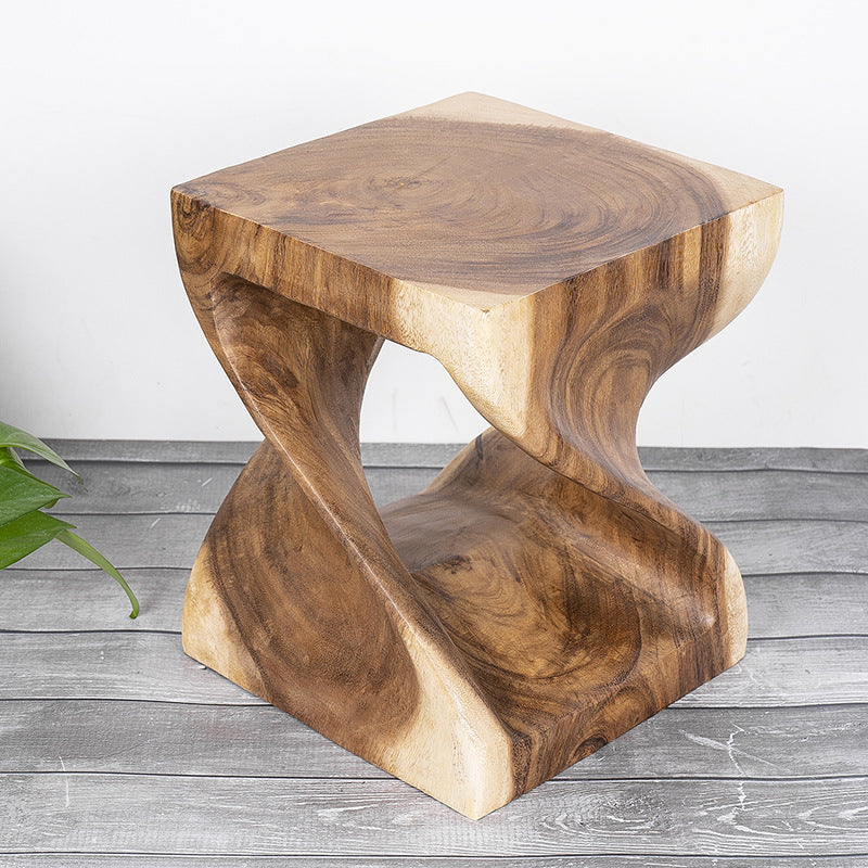 Ce tabouret est non seulement pratique pour s'asseoir et enfiler vos chaussures dans le couloir, mais il ajoute également une touche de caractère naturel à votre espace. Sa fabrication en bois massif et son design torsadé en font un élément de décoration polyvalent qui peut également être utilisé comme support pour les plantes ou les objets décoratifs.