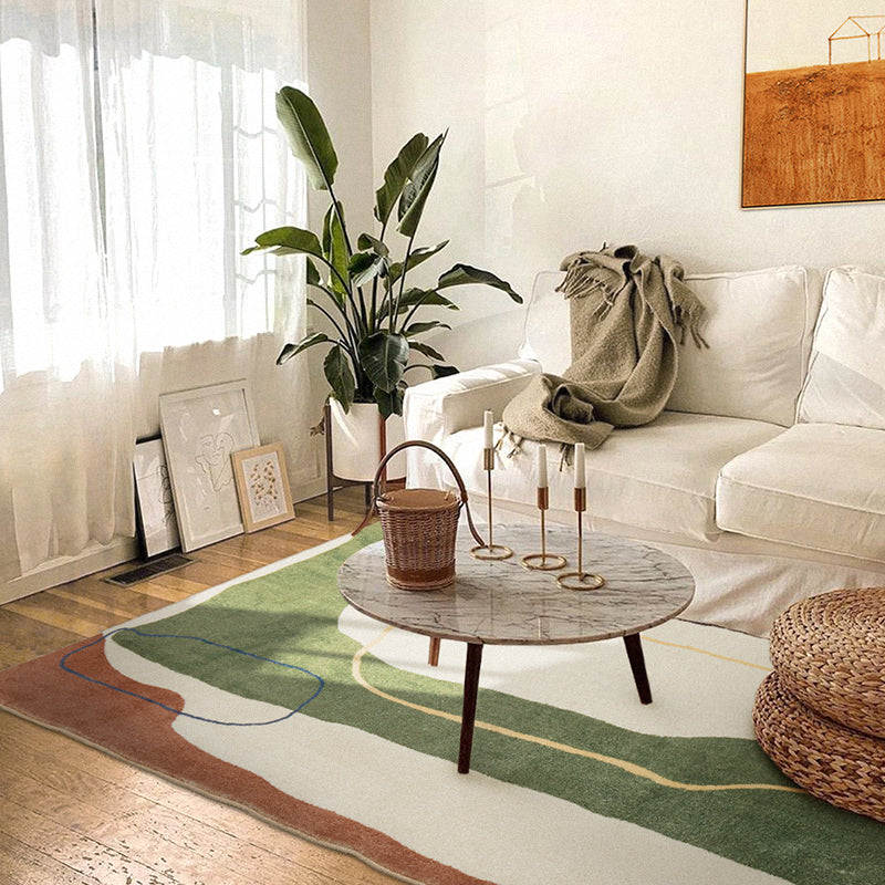 Ce tapis de thé rétro et original est un choix idéal pour compléter votre salon. Son design abstrait et ses couleurs subtiles apportent une ambiance chaleureuse et accueillante à votre espace, tout en offrant une surface douce et confortable pour vos pieds.