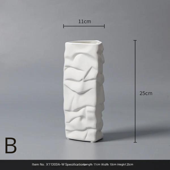 Le vase en céramique post-moderne minimaliste est conçu pour apporter une touche d'élégance moderne à vos espaces intérieurs. Fabriqué en poterie blanche, il offre un look épuré et intemporel qui s'intègre parfaitement dans les environnements minimalistes ou contemporains.